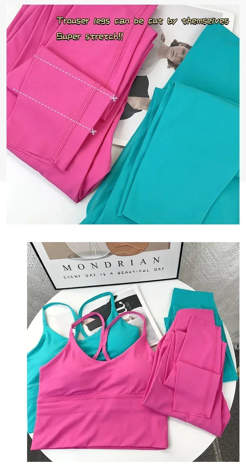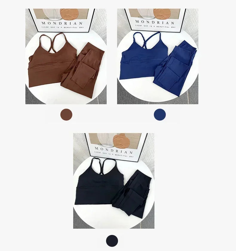 2 Piece Yoga Set Sportswear Fitness Suits Sexy Cross back Yoga Tops Elasticity High Waist Leggings Running Sports Clothing👚👍️
