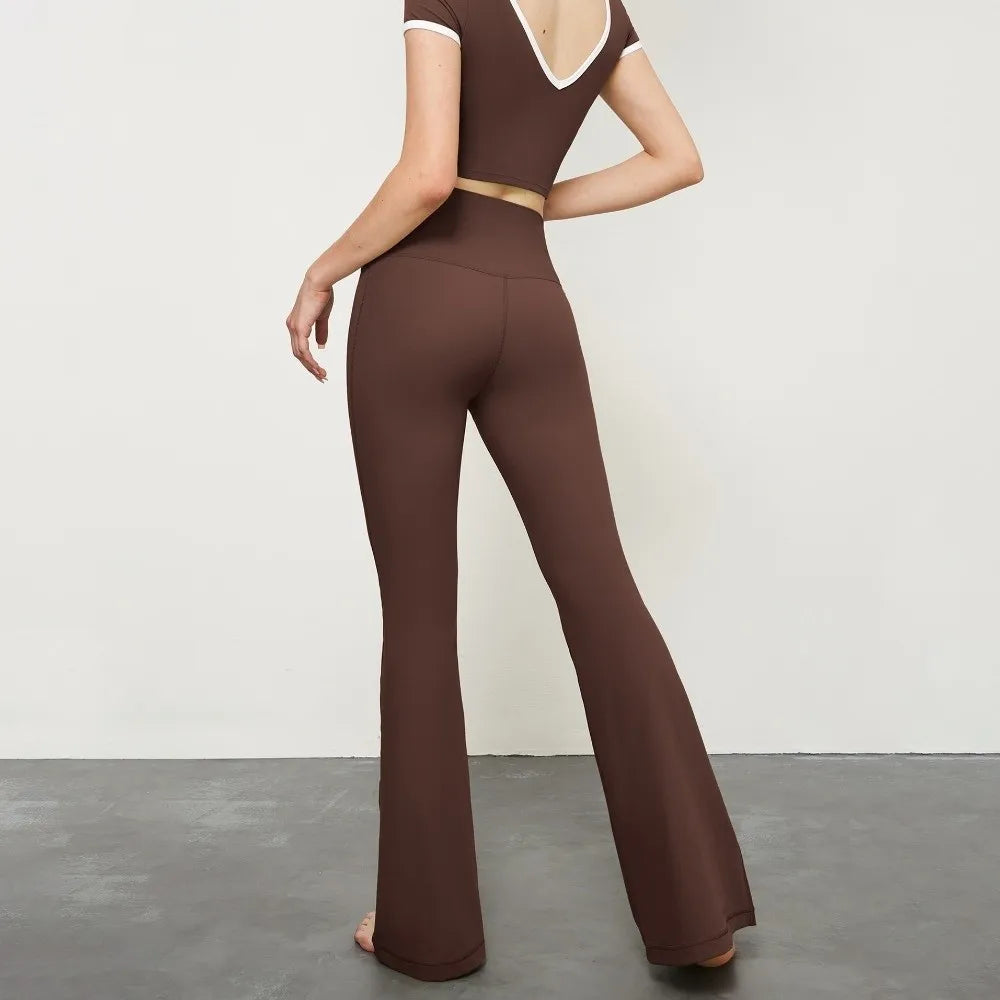 Gym High Waist Sports Flared Pants Wide Leg Hip Lifting Yoga Pants Breathable Stretchy Fitness Pants Exercise