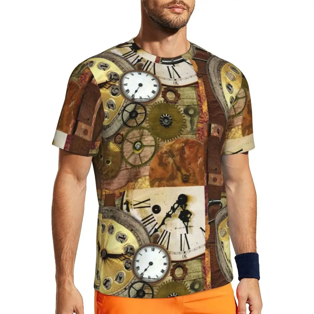 Gym T Shirt For Men Steampunk Design T-Shirts Fashion Wonderful Clockwork Vintage Summer Tees O Neck Streetwear Design Tops