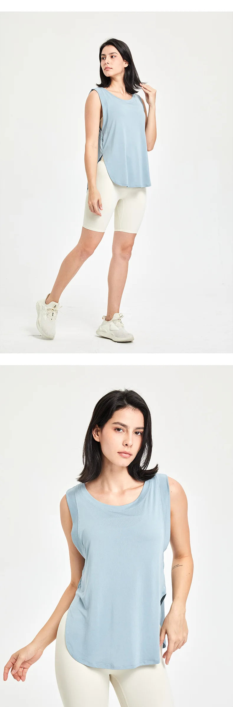 Loose Fit Sleeveless Gym Workout Shirt Women Quick Dry Yoga Running Top Female Long Modal Trainning Camis Sports Active Clothing