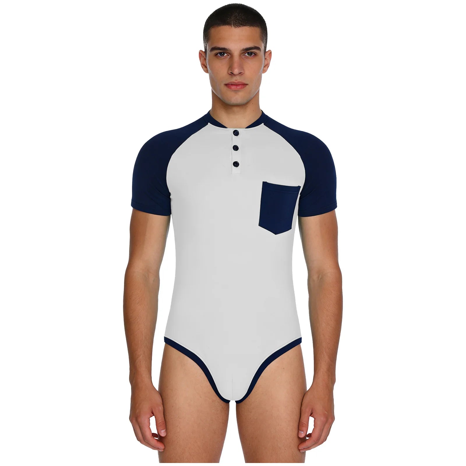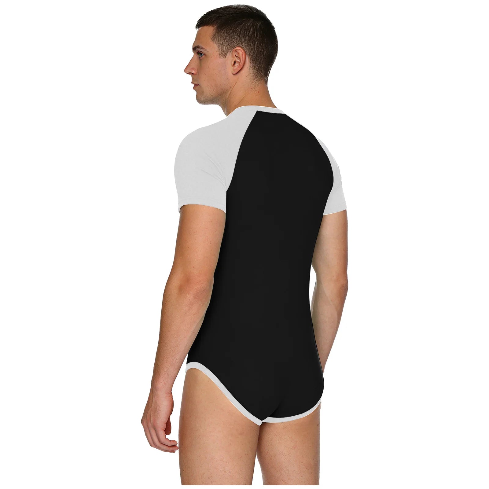Men Adult Bodybuilding Wrestling Bodysuit Short Sleeve Slim Fit Shirt Jumpsuit for Daily Casual Workout Gym Sports Outfits