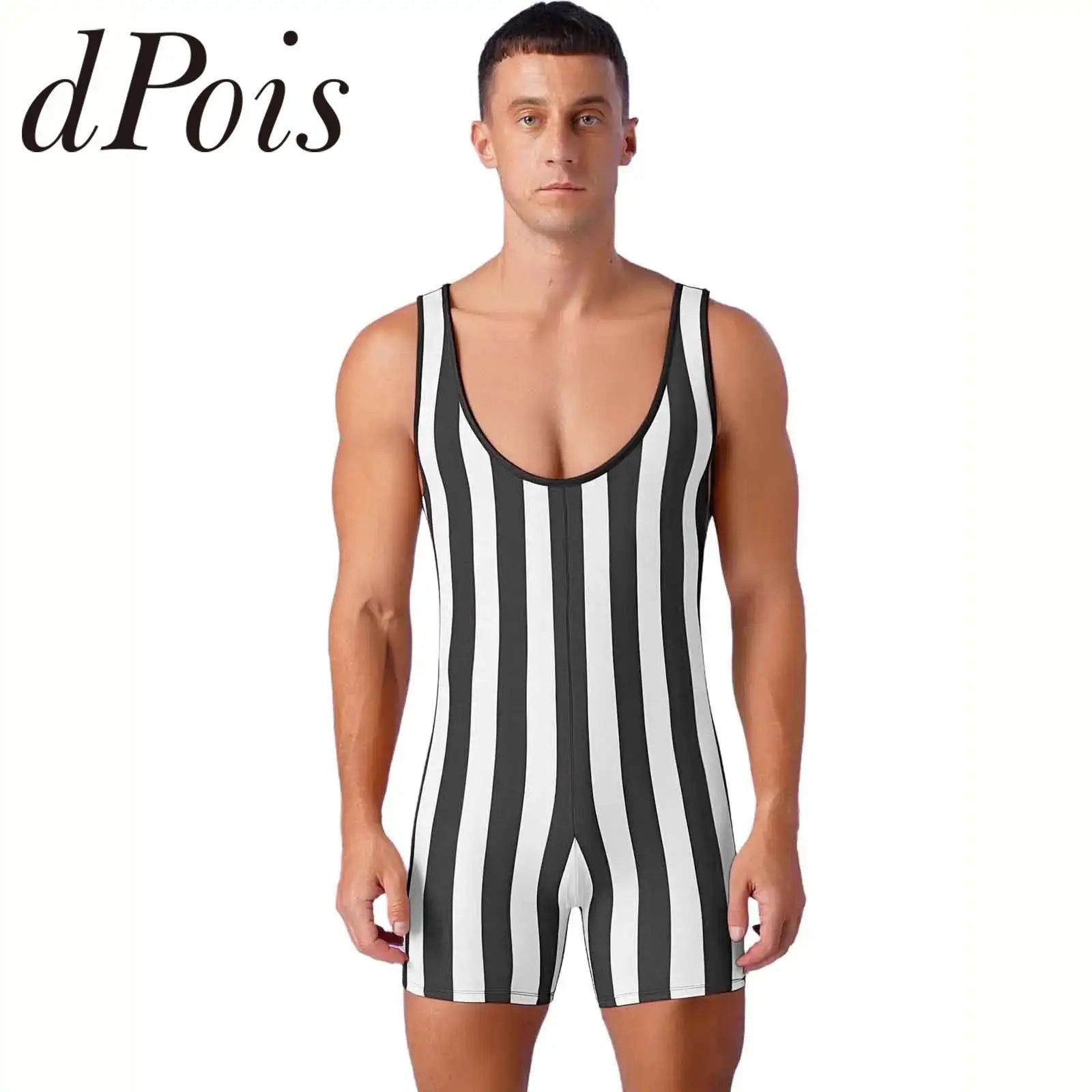 Men's Swimwear Gym Sports Yoga Gymnastics Leotard Bodysuits Striped Jumpsuit Swimming Suits Workout Wrestling Singlet Bodysuit