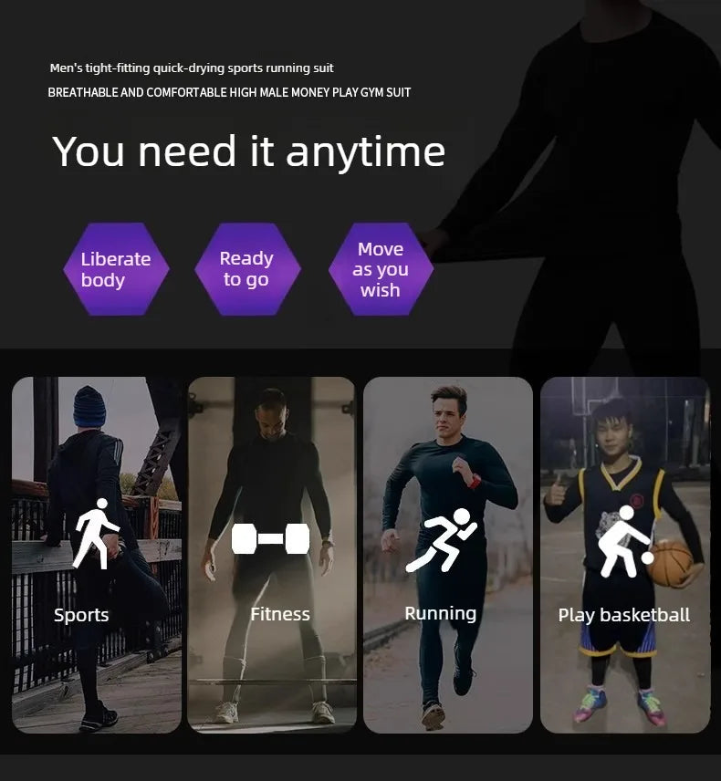 Men's Waterproof Casual Sportswear Set Tight Fitting Trendy Gym Running Clothes for Spring Summer Morning Jogging