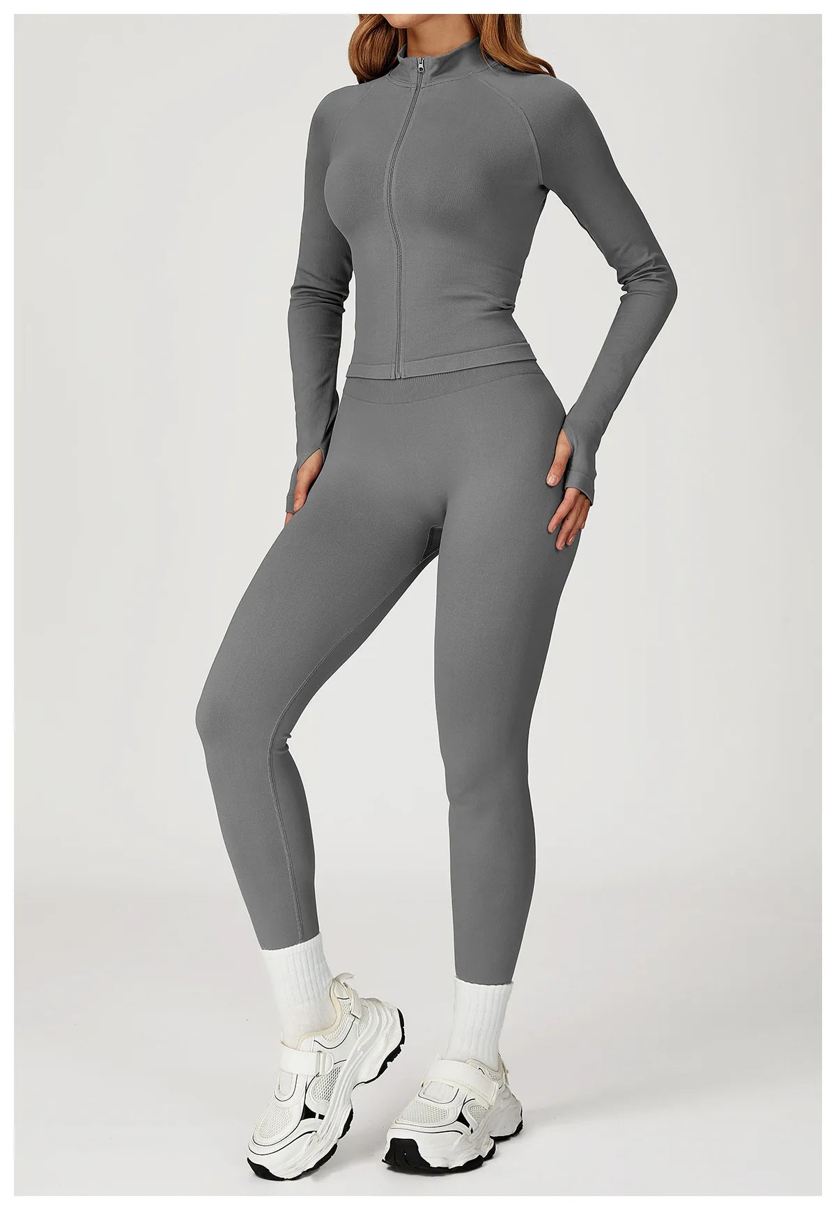 Seamless 2 Pieces Yoga Suit Sports Outfits Women Gym Set Women Tracksuit Running Workout Long Sleeve Sports Shirt Yoga Clothing
