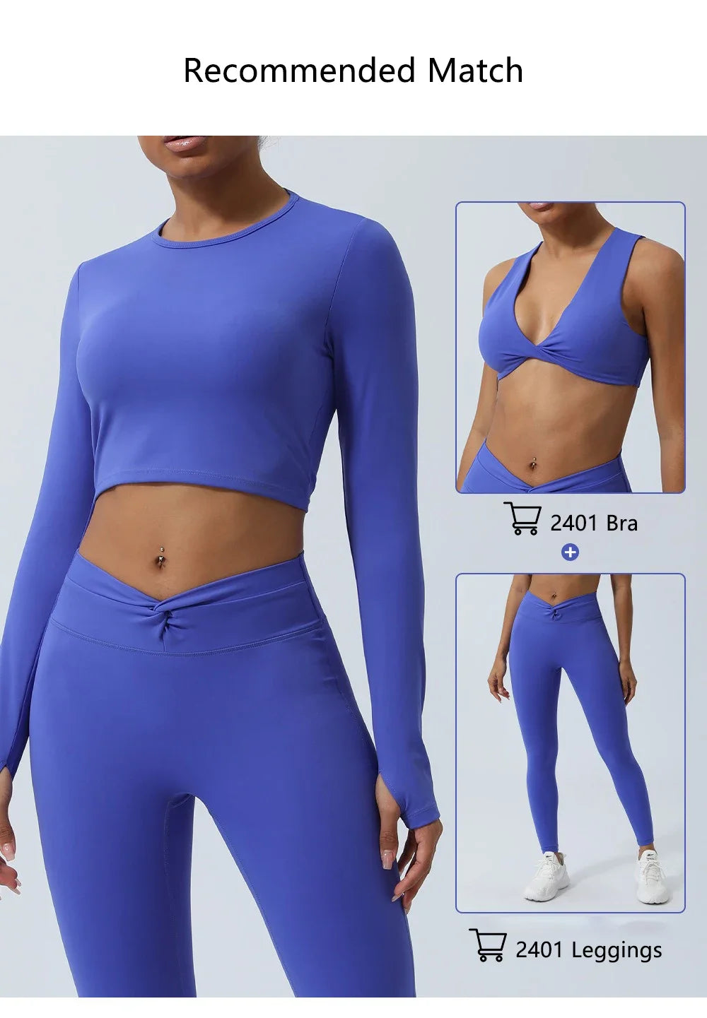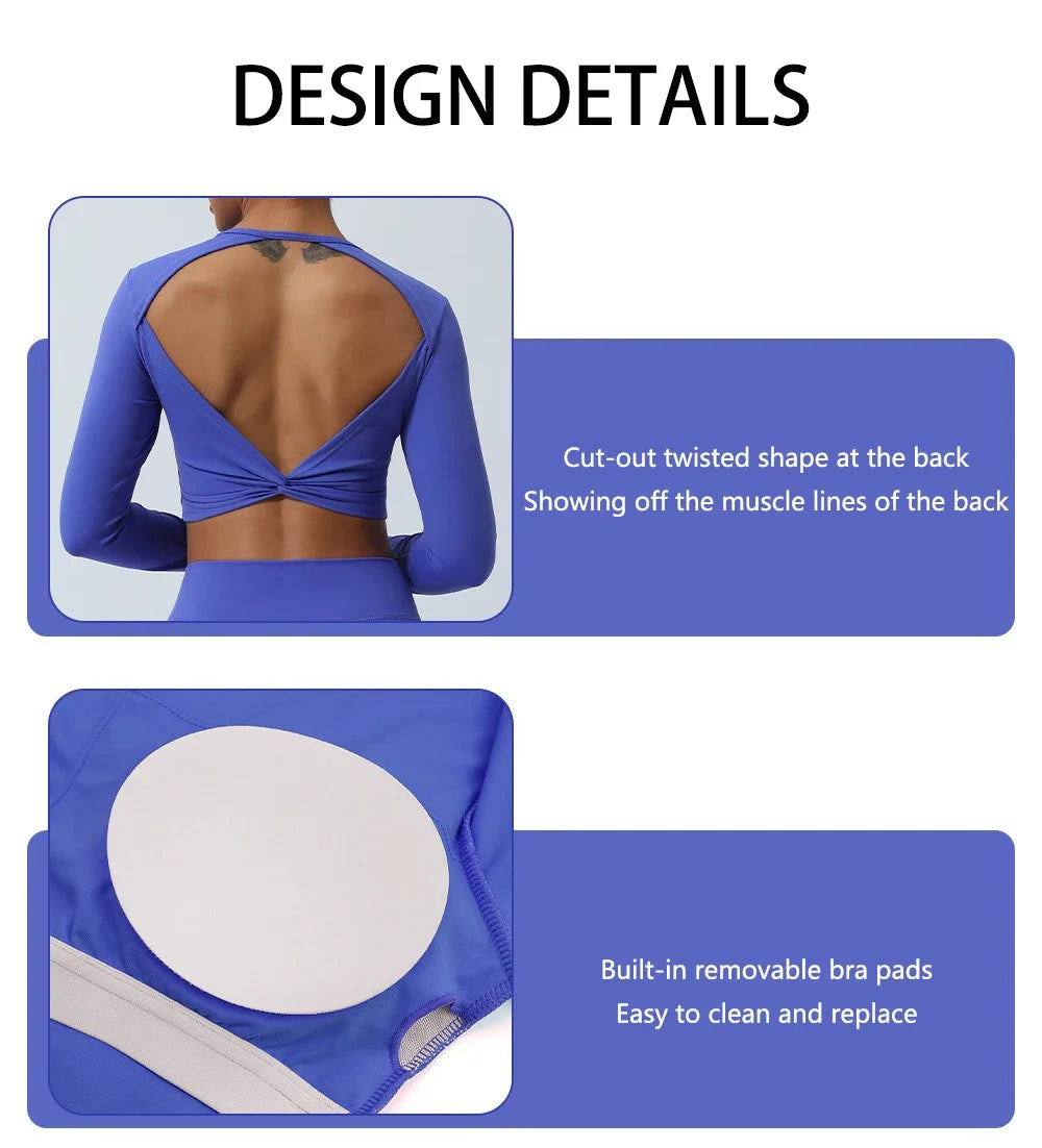 Sexy Backless Long Sleeve Yoga Clothing Stretch Gym Workout Top Female Running Quick Dry Sportswear Women Back Cross Sports Top