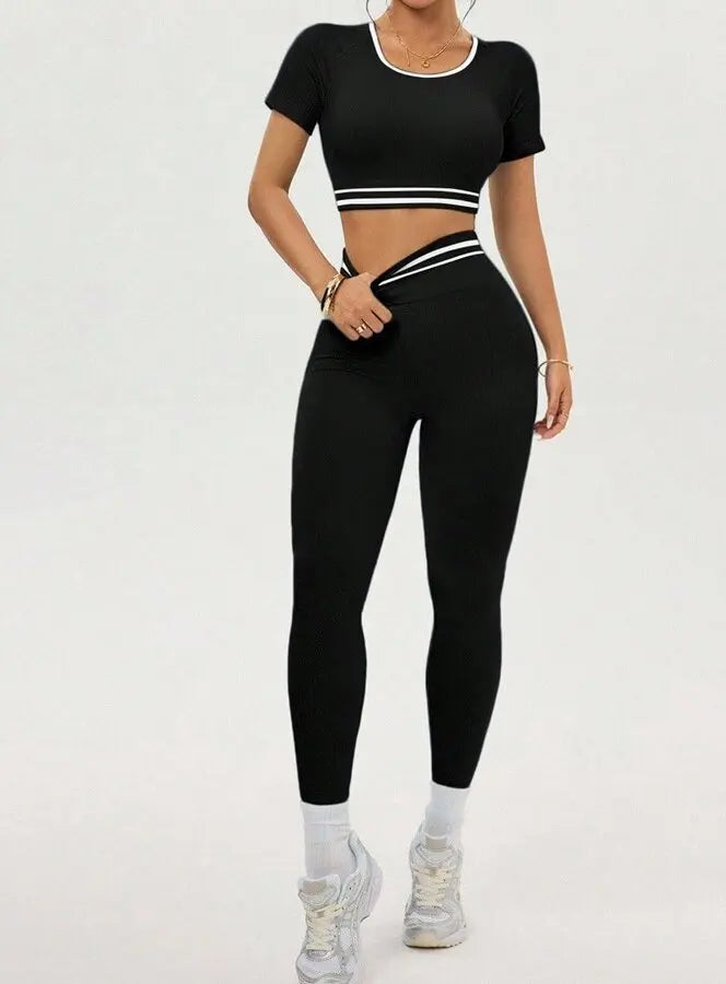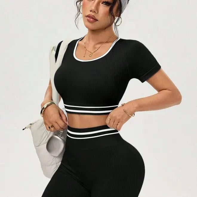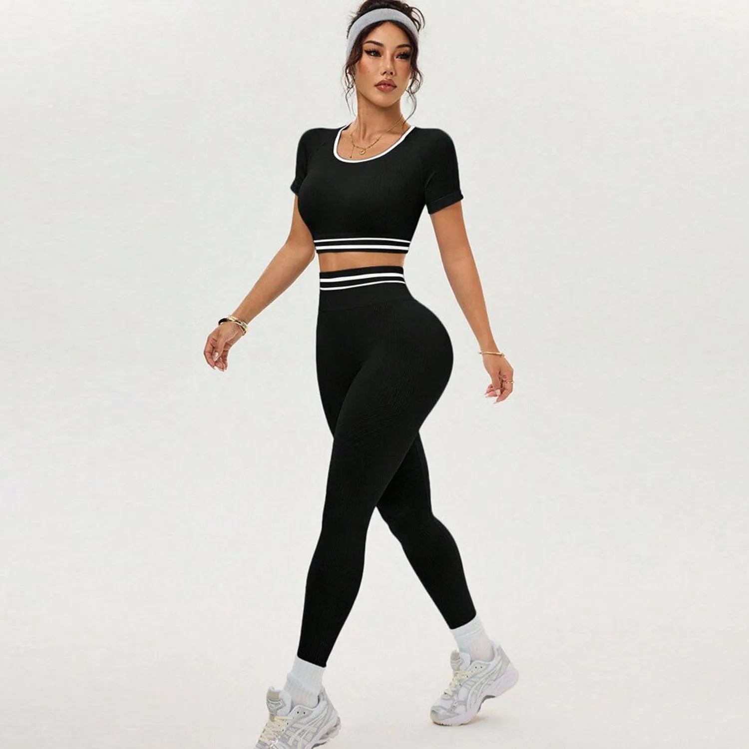 Women Gym Sets Crop Top Shirts Leggings Suits Elastic Fitness Sports Casual Workout Athletic Yoga Pants Tights 2 Pecs Sportswear