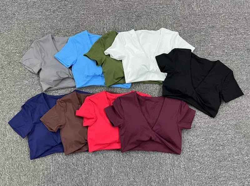 Women Sports Top Padding Gym T-shirt 2025 Sport Crop Top Woman Sportswear Yoga Clothing Tracksuit Brown Wine Red White Blue Navy