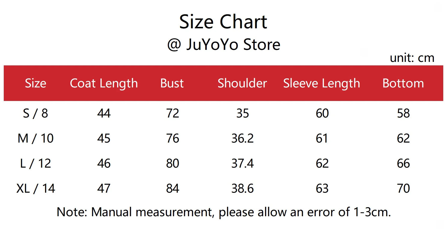 Size: S 8, M 10, L 12, XL 14
